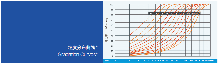 *曲線上的數(shù)字為排料口尺寸,方孔篩篩析。